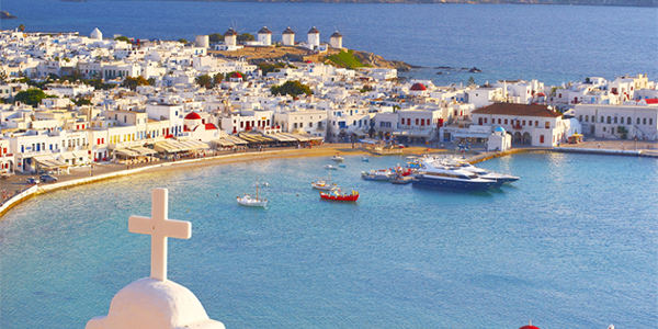 Mykonos one of the Islands off mainland Greece, part of the Cyclades Islands and considered one of the cosmopolitan islands favoured by the jet set in earlier years. Mykonos is connected to mainland Greece by several regular flights.